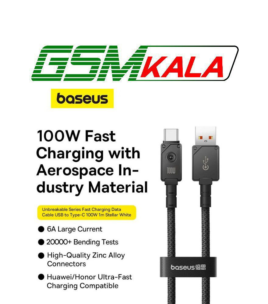 کابل تایپ سی فست شارژ 100 وات باسئوس Unbreakable Series P10355801111-00 طول 1 متر