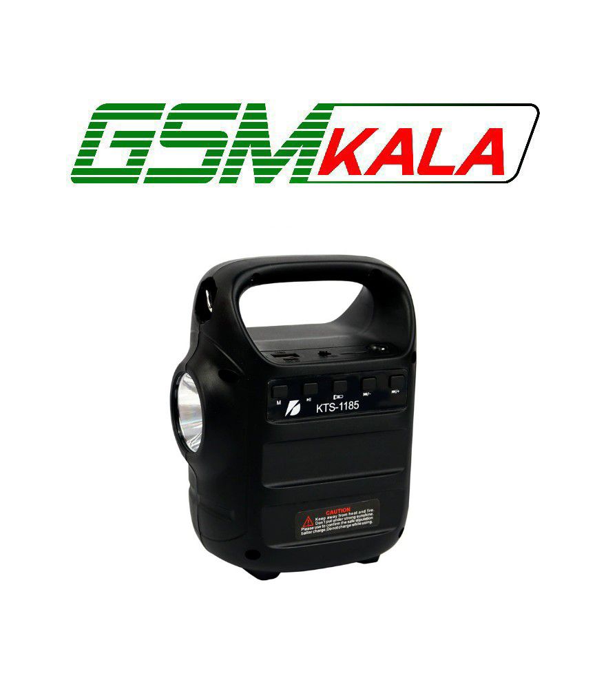 KTS-1185 دارای یک درایو ۳ اینچی بوده که با توان خروجی کلی ۵ وات، صدای خوبی را در محدوده فرکانسی ۲۰ هرتز الی ۲۰ کیلو هرتز با بهره بردن از حساسیت سیگنال به نویز ۸۵ دسی بل پخش می کند. تامین انرژی این محصول از طریق باتری لیتیومی داخلی ۱۲۰۰ میلی آمپر ساعته بوده که به وسیله کابل میکرو یو اس بی قابل شارژ می باشد و می تواند با حجم صدای ۷۵ درصد حدود ۱ الی ۲ ساعت به پخش موسیقی بپردازد. نورپردازی داخلی LED در بخش بلندگوی این اسپیکر موجب شده است تا در مکان های با نور کم و تاریک از جذابیت بالایی در هنگام پخش موسیقی برخوردار شود. یک پنل کلید های فیزیکی بر روی بدنه محصول فوق تعبیه شده است که به واسطه آن می توان به مدیریت موسیقی، میزان صدا، چراغ قوه و … پرداخت.