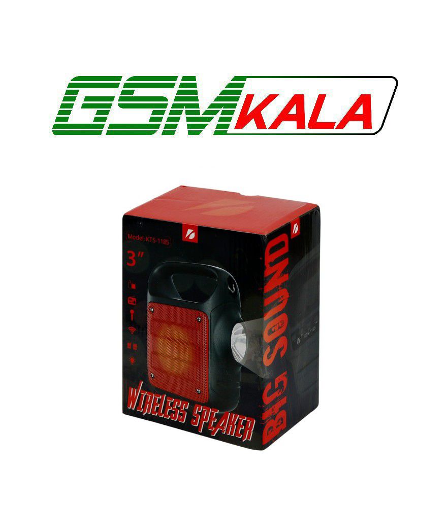 اسپیکر بلوتوثی قابل حمل مدل KTS-1185 به وسیله اتصال بی سیم بلوتوث خود می تواند به دستگاه های سازگار نظیر تلفن همراه، تبلت و … متصل شود و امکان اتصال را تا برد تقریبی ۱۰ متر برای کاربر فراهم سازد. پشتیبانی این محصول از فلش مموری USB و حافظه رم میکرو اس دی تا حداکثر ظرفیت ۳۲ گیگابایت، موجب شده است تا امکان پخش موسیقی از روش های متعددی فراهم شود. وجود چراغ قوه بر روی بدنه اسپیکر بی سیم KTS-1185، این پخش کننده موسیقی را به یک گزینه مناسب برای به همراه داشتن در هنگام طبیعت گردی در هنگام شب تبدیل کرده است و با ۳ حالت نوردهی قوی، ضعیف و چشمک زن خود بازه روشنایی نسبتا خوبی را برای کاربر فراهم سازد. پشتیبانی این اسپیکر وایرلس از امواج ۸۷٫۵ مگاهرتز الی ۱۰۸ مگاهرتزی رادیو FM موجب شده است تا دوستدارن شبکه های رادیویی نیز امکان استفاده از آن را داشته و از گوش دادن به برنامه رادیویی مورد علاقه خود لذت ببرند.