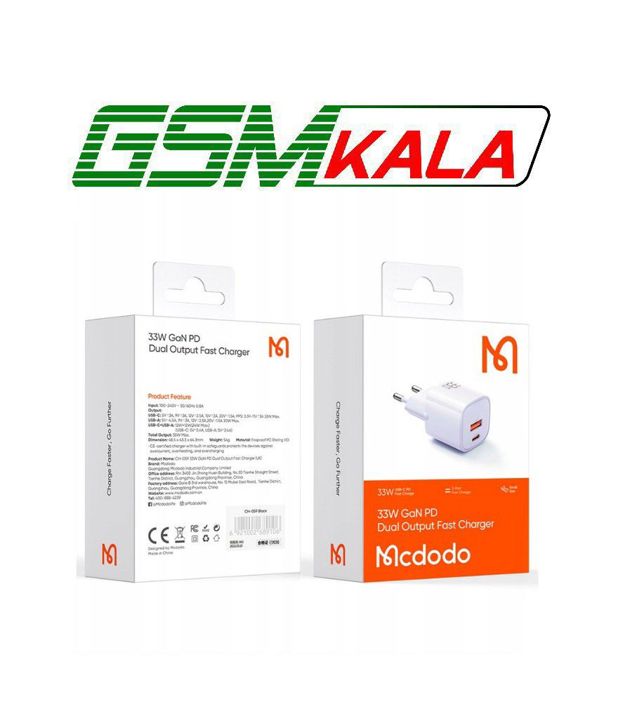 شارژر دیواری 33 وات مک دودو Nano CH-015 VOOC GaN QC4.0 PD3.0 4.5A