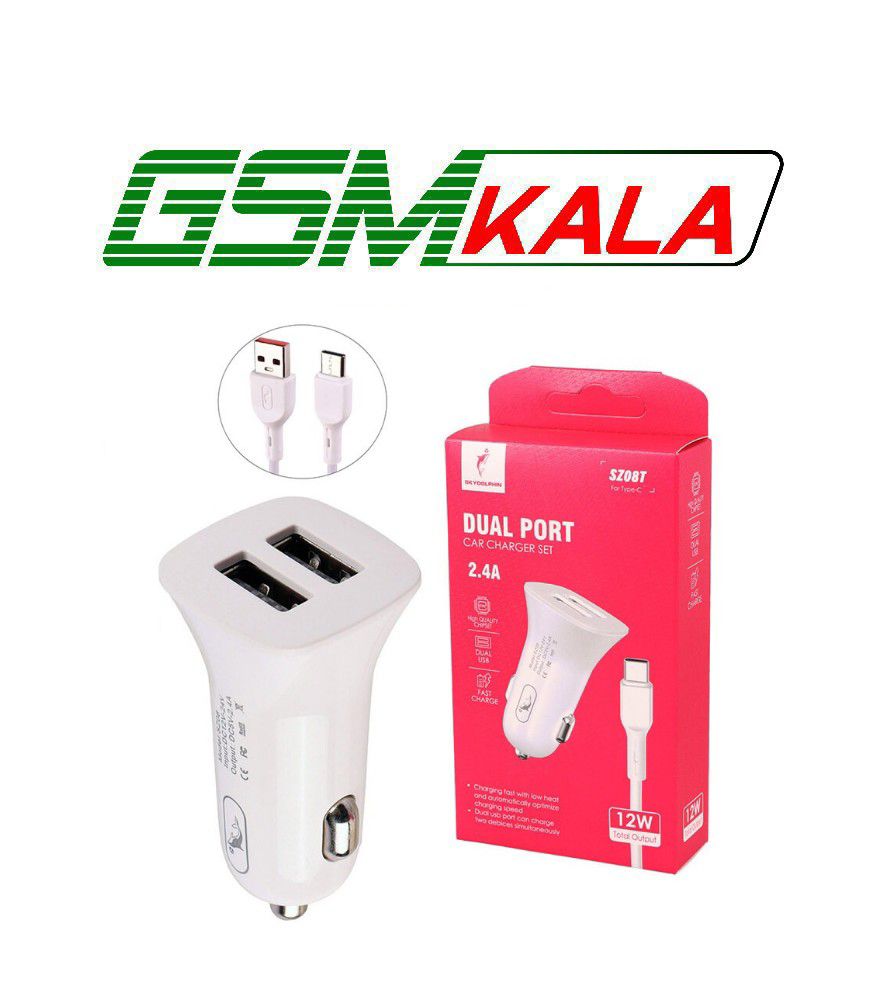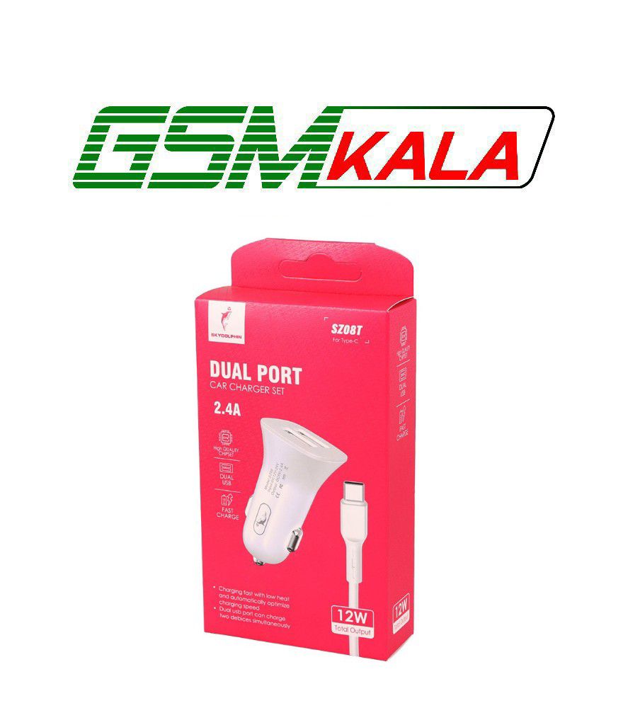 شارژر فندکی 12 وات اسکای دلفین SZ08 + کابل تایپ سی