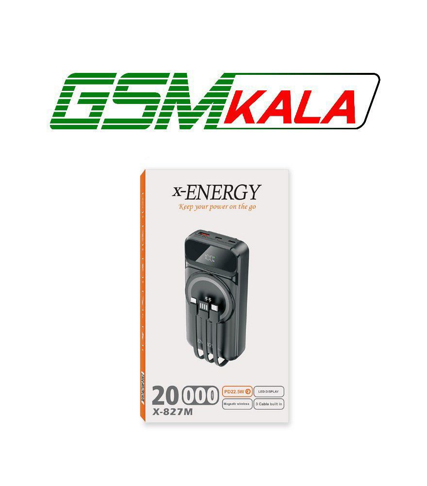 پاور بانک بی سیم فست شارژ ایکس انرژی X-827M QC3.0 PD 22.5W ظرفیت 20000 میلی آمپر ساعت