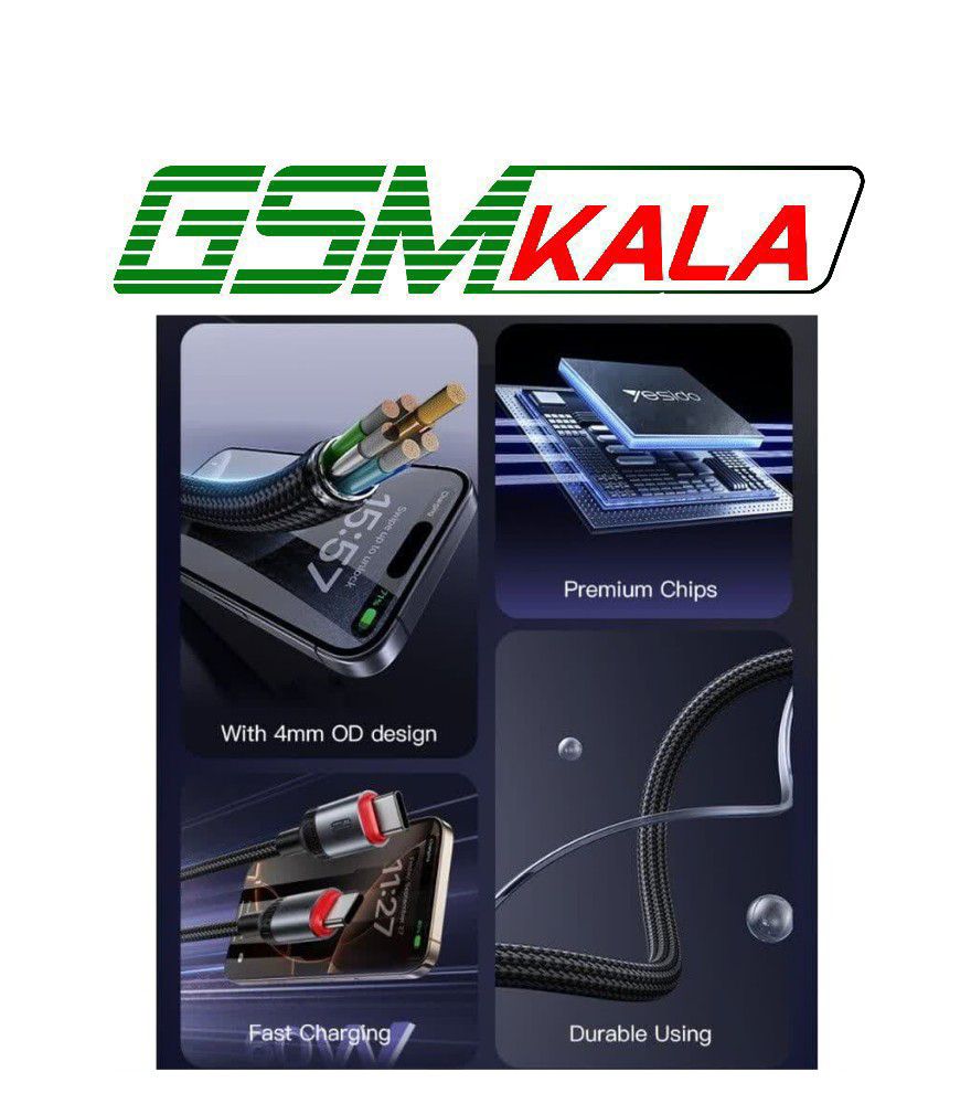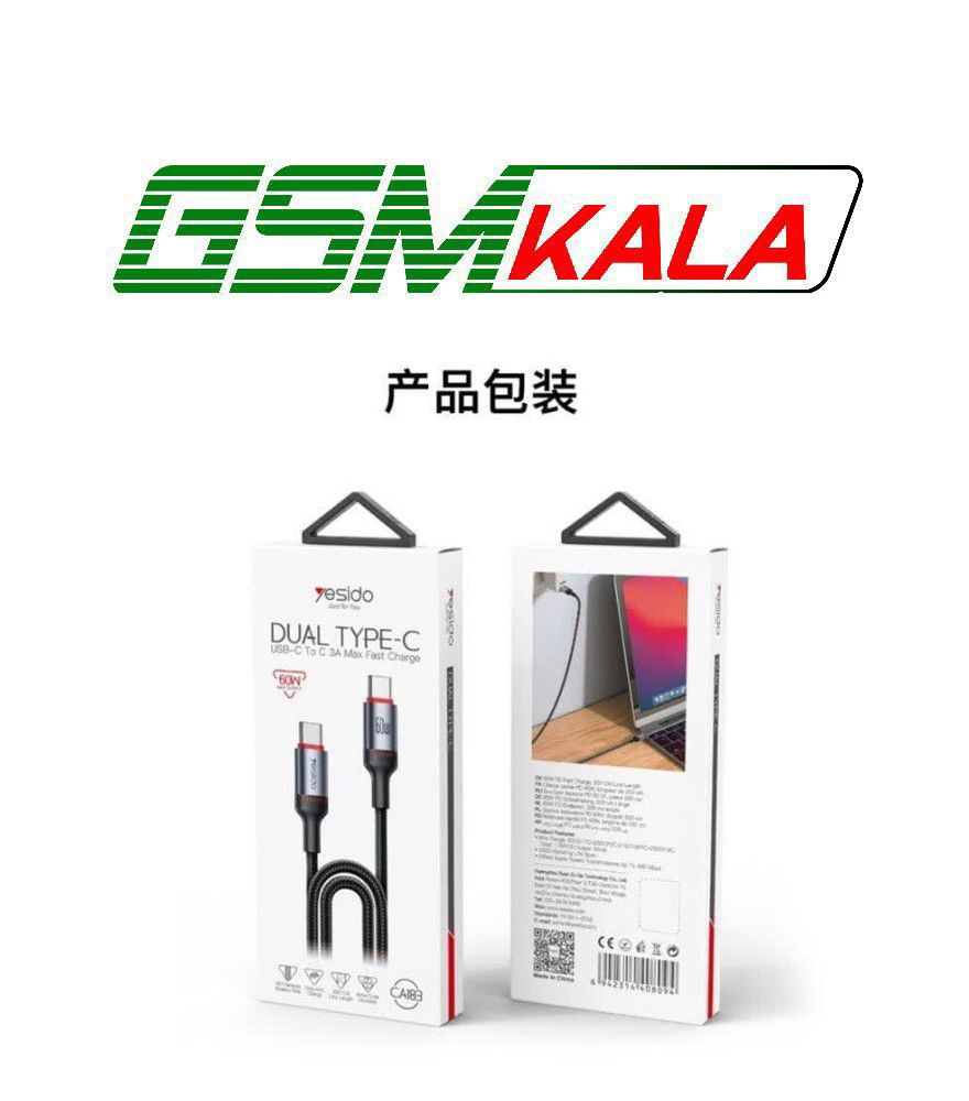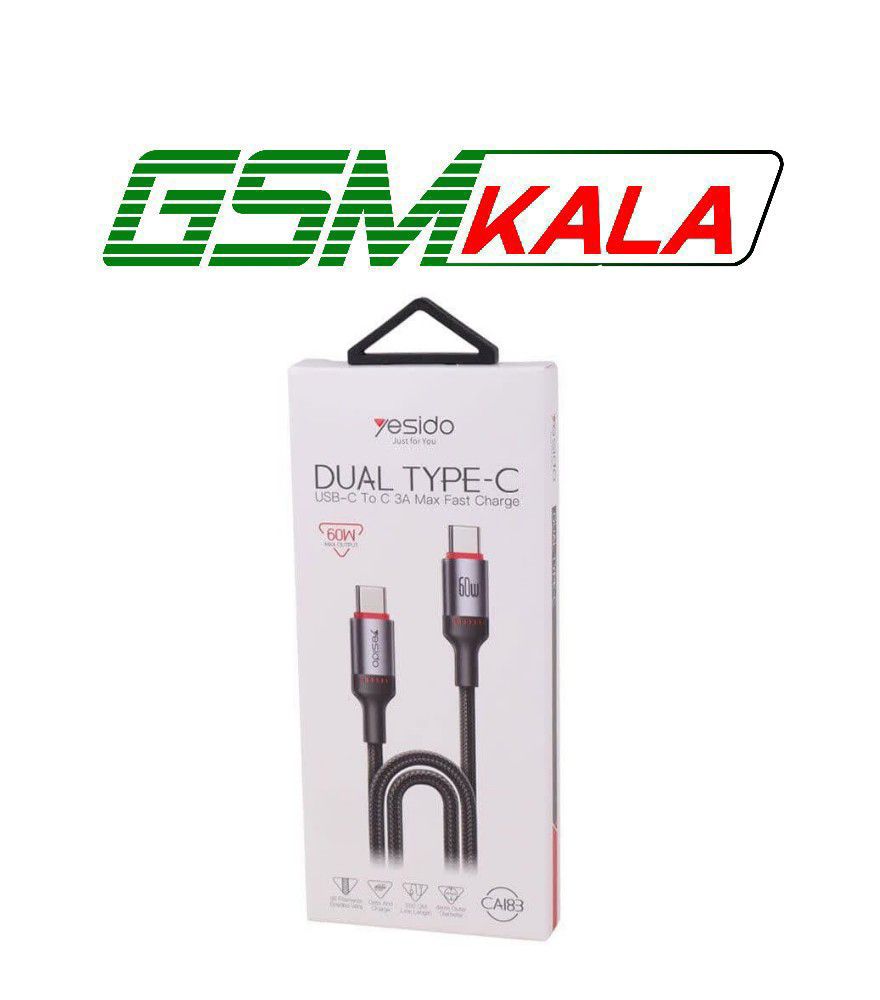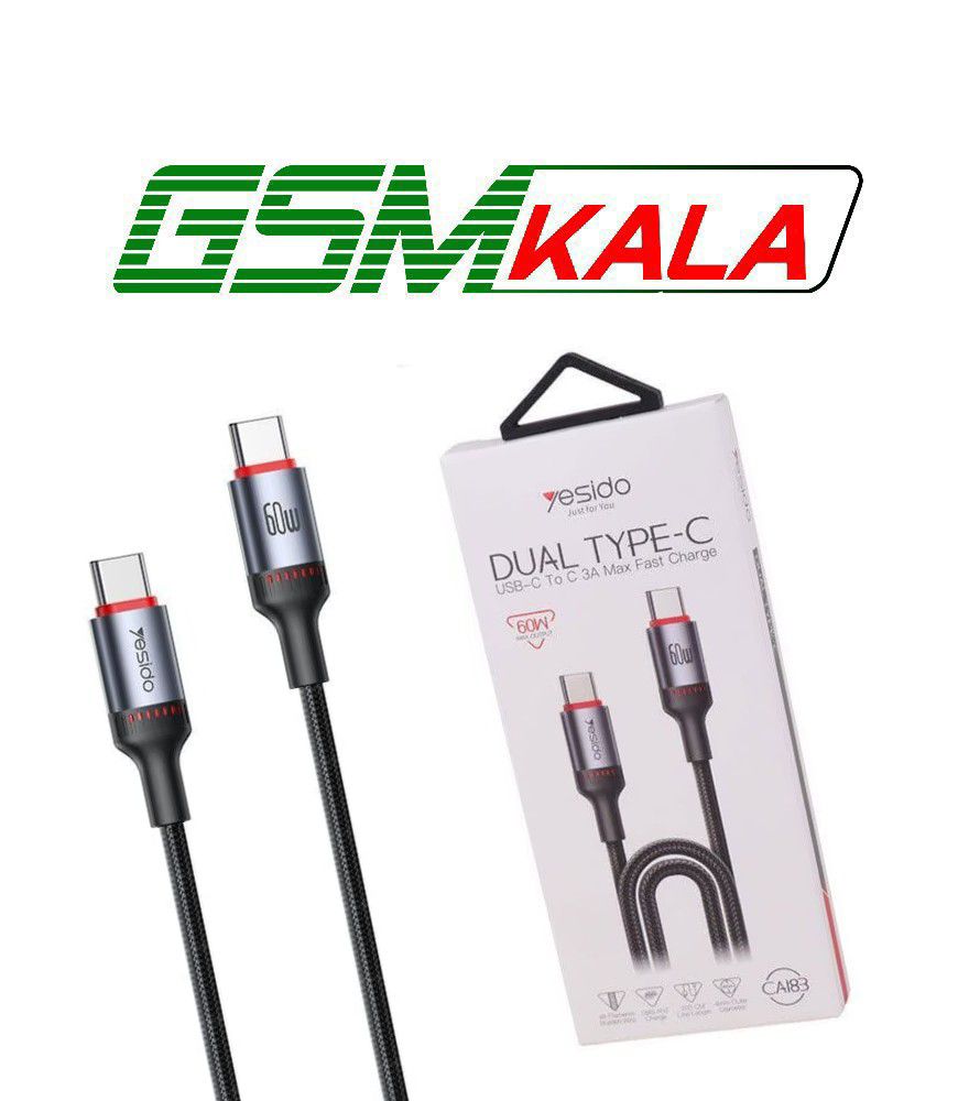 کابل دو سر تایپ سی فست شارژ 60 وات یسیدو CA183 طول 2 متر